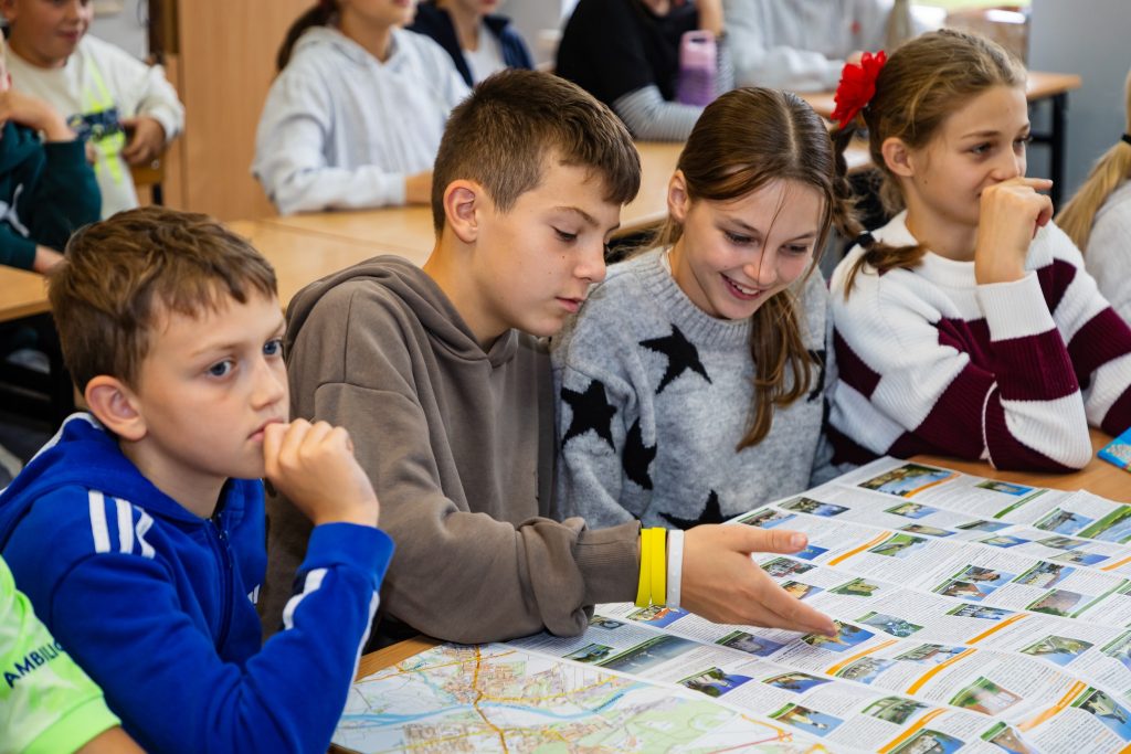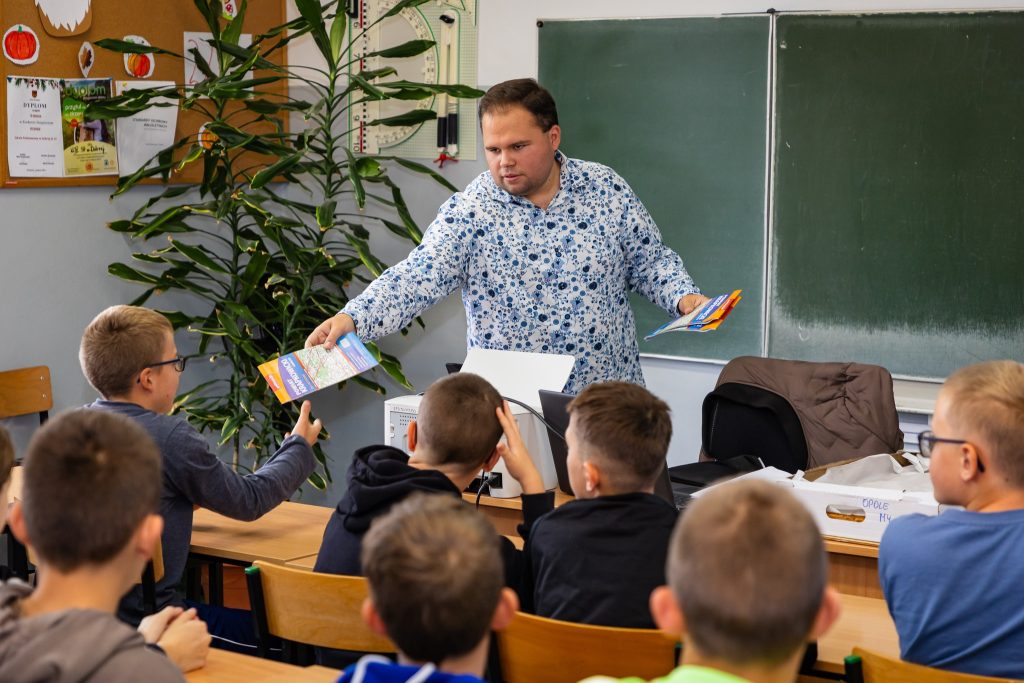 W ramach zadania przeprowadzono cykl zajęć edukacyjno-artystycznych w pięciu szkołach podstawowych zlokalizowanych w różnych gminach powiatu. Program obejmował prelekcję poświęconą historii i kulturze regionu, interaktywny quiz wiedzy, prezentację lokalnego dziedzictwa kulinarnego oraz warsztaty artystyczne, podczas których uczniowie tworzyli własne torby inspirowane regionalnymi wzorami. Zajęcia miały charakter praktyczny i angażujący, a ich celem było kształtowanie poczucia tożsamości lokalnej, dumy z miejsca pochodzenia oraz zachęcanie do dalszego poznawania „małej ojczyzny”.